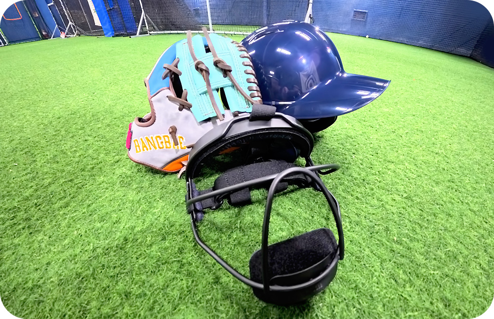 수비 연습용 글러브, 수비 연습용 안전 마스크, 타자 헬멧